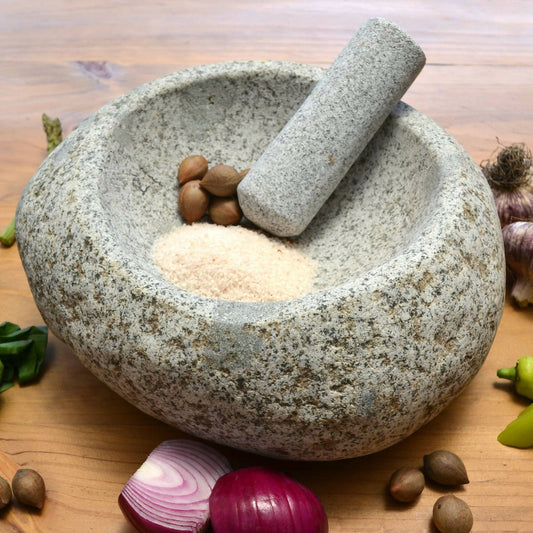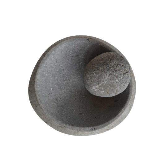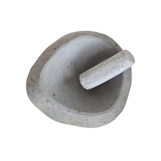 Mortero Piedra Río L Manchas Blancas Mano Redonda