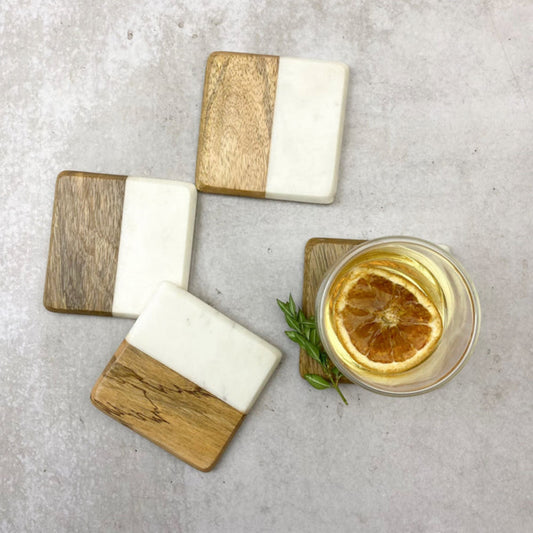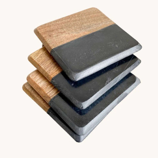 Posavasos Mármol Madera con Tachas de Bronce